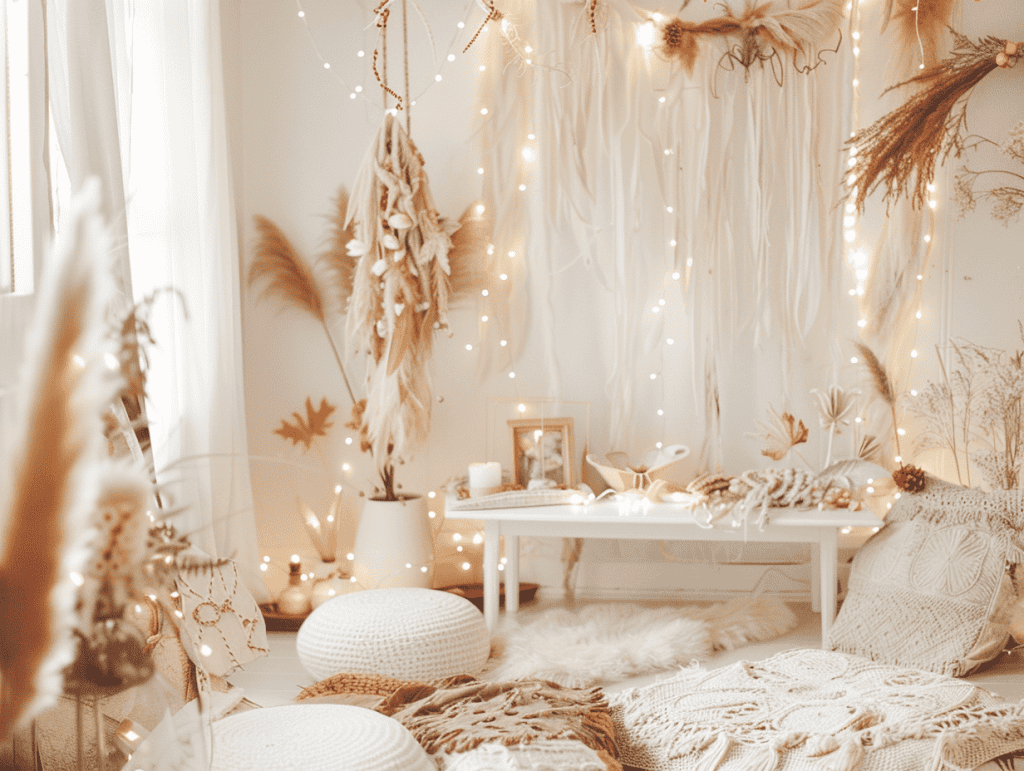 Paired with lace, beads, or dried flowers, feathers enhance the boho aesthetic without overwhelming the space. Used thoughtfully, they create an airy, romantic feel that works beautifully in softly lit rooms.