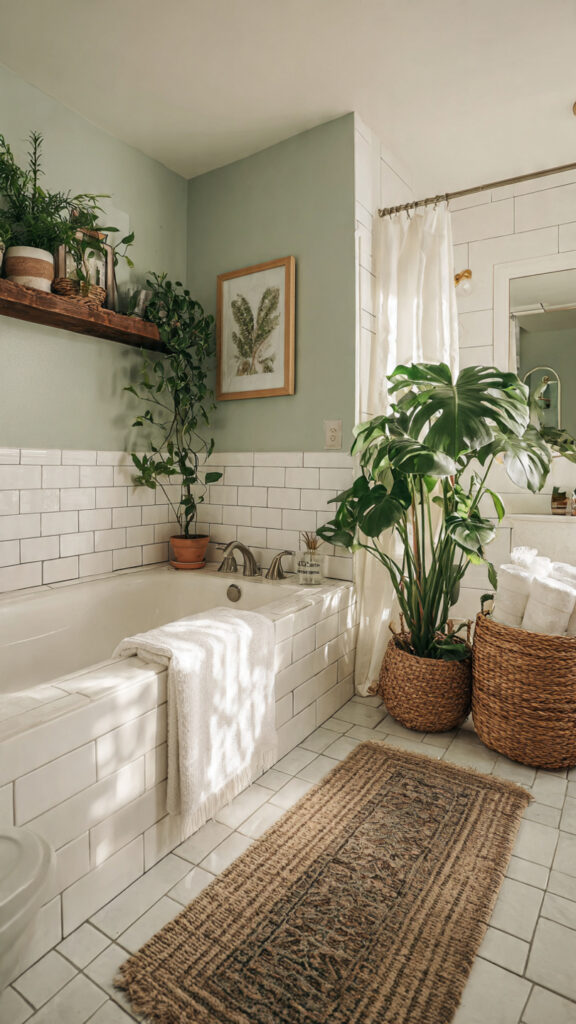 I’ve learned that small, affordable details can transform the entire bathroom. Matching soap dispensers, shower curtains, bath mats, decorative towels, candles, small plants, and wall art all make the space feel cohesive and welcoming. Each of these items costs less than $25, but combined they create a polished, intentional look that elevates the room.