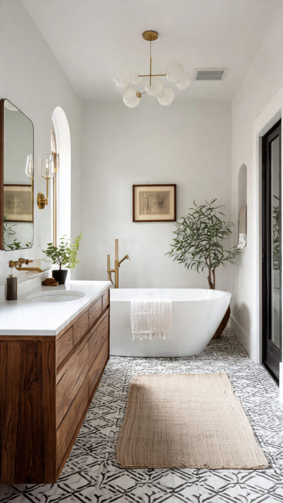 Being a renter doesn’t mean sacrificing style. Peel-and-stick tiles, removable wallpaper, and tension rods are easy ways to refresh the bathroom without risking your deposit. Adhesive hooks and command-strip hardware replace towel bars or holders effortlessly. These solutions are cost-effective, simple to remove, and still allow the space to feel personalized and modern.