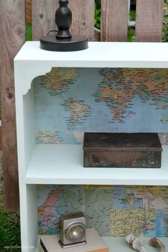 Using a map on the back panel of a bookshelf adds depth and color. This idea transforms an ordinary storage unit into a standout design feature and is one of the most creative Map Ideas For Unique Wall Decor.