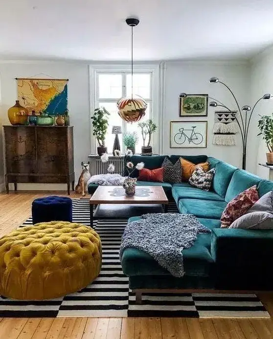 A large push pin map creates a deeply personal display by marking places visited and future destinations. It functions as décor while also telling a visual story of travel and memories.