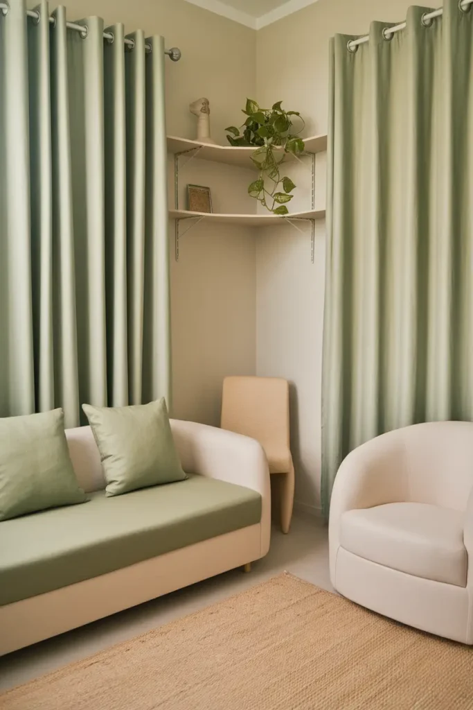 I often use cream with sage green when I want a room to feel warm and welcoming without losing its calm vibe. Creamy textiles like pillows, rugs, or curtains soften sage green walls and furniture while adding gentle warmth. This color combination works beautifully in bedrooms and living rooms where comfort and relaxation are the main focus.