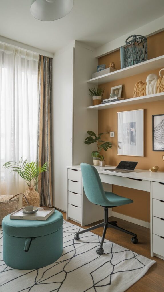 In a studio, every piece of furniture should serve more than one purpose whenever possible. Storage ottomans can function as seating while hiding clutter. Nesting tables provide flexibility without occupying permanent space. Foldable or wall-mounted desks allow work areas to disappear when not in use. Versatile furniture keeps the layout adaptable and efficient. These space-saving strategies are at the core of Cozy Studio Apartment Ideas because they reduce overcrowding while maintaining daily comfort.