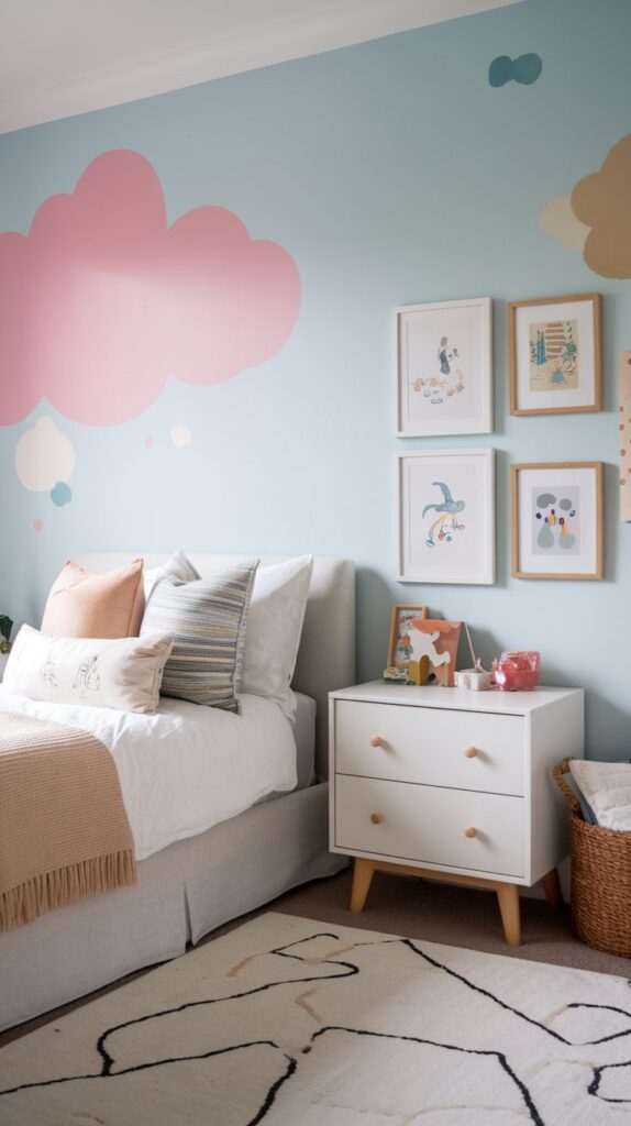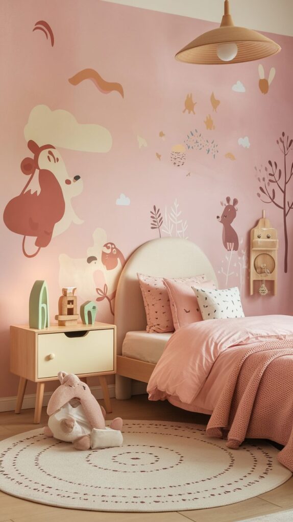 Using one feature wall for a mural prevents the room from feeling overwhelming. Keeping other walls simple maintains balance. This mix of creativity and calm supports both playtime and bedtime.