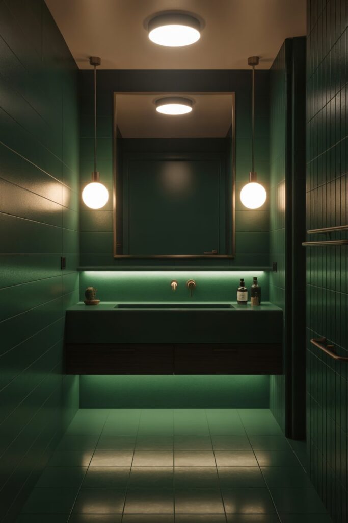When I wasn’t ready to go all-in, I started with a single dark green accent wall—and it worked perfectly. It gave my bathroom depth without making it feel smaller.