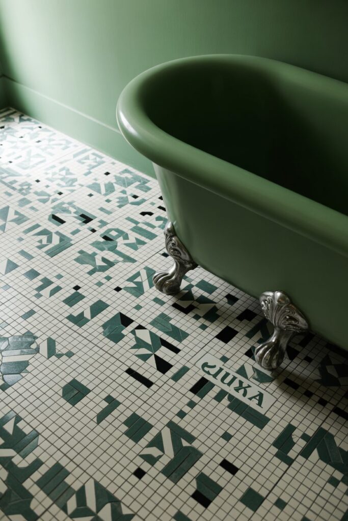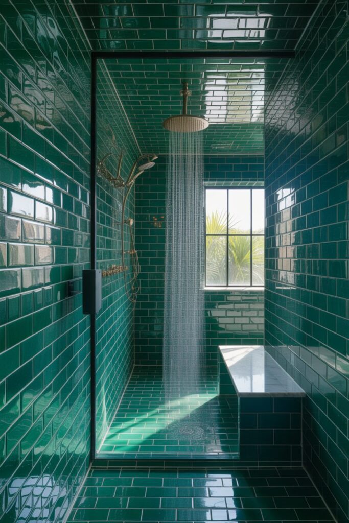 If you want a high-end look, tiles are the way to go. I’ve noticed that glossy dark green tiles reflect light and prevent the room from feeling dull.