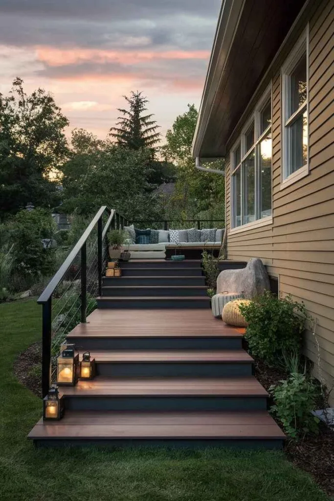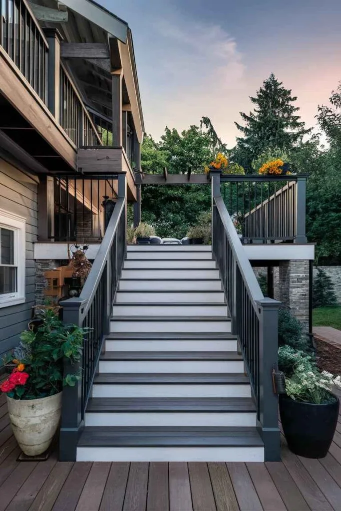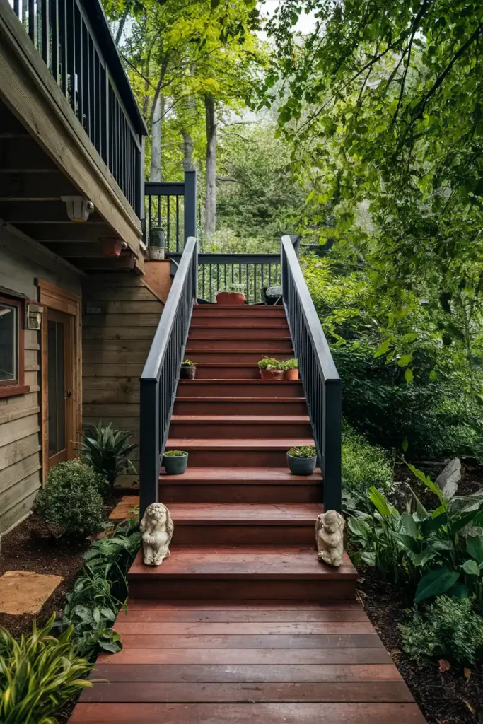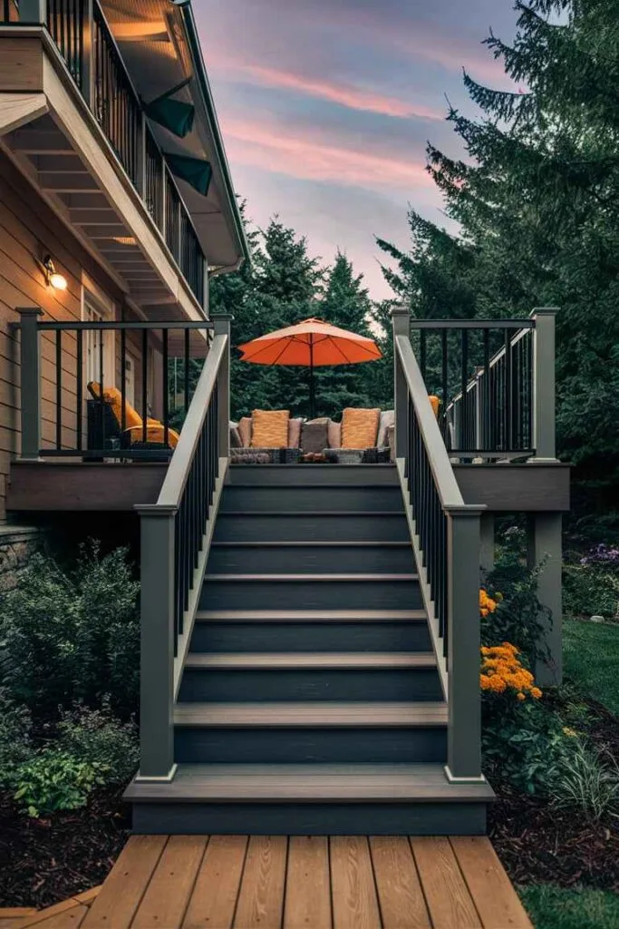 When planning deck stairs ideas, I always focus on both appearance and safety. Adding plants helps connect the deck to nature, while bold colors can give a more modern feel.
