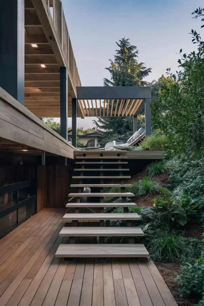 I sometimes prefer hidden steps for a clean and minimal look, especially in modern designs. Tucking them under the deck keeps the focus on the main structure.