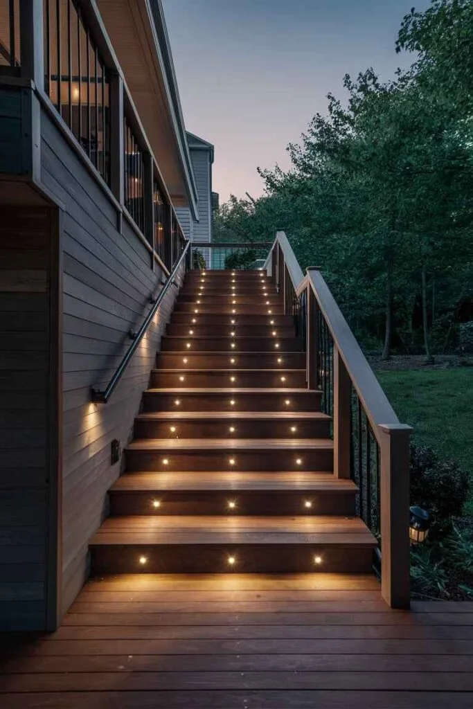 I always suggest adding lighting to stairs because it improves safety at night and adds a warm atmosphere. It makes the space usable even after sunset.