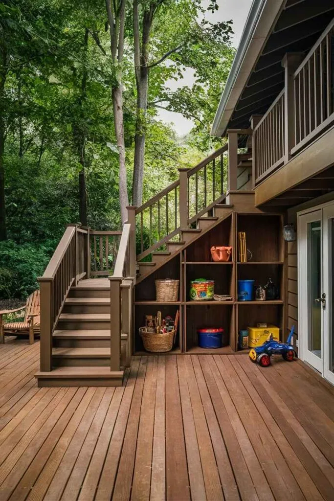 I like using the space under stairs for storage because it keeps outdoor areas organized. It’s a practical solution for saving space.