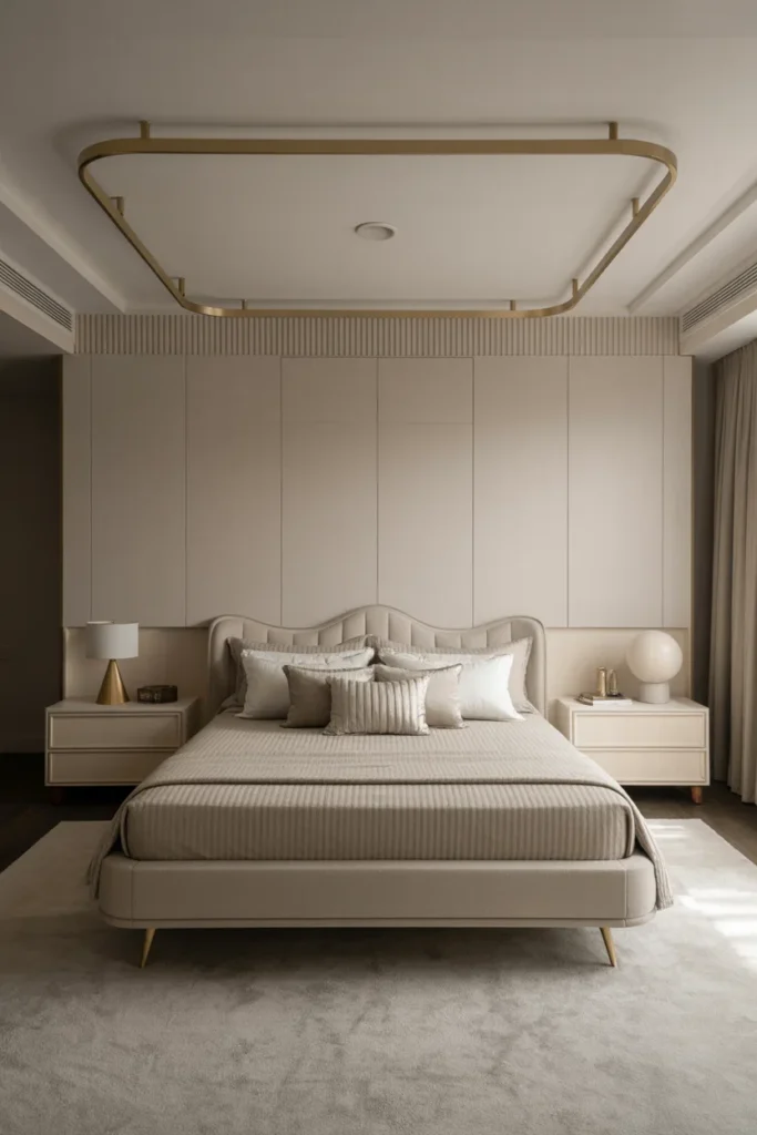Metallic accents introduce subtle glamour into a Modern Master Bedroom when used with restraint. Finishes like gold, brass, or silver add brightness and sophistication without overpowering the design. These elements work best when balanced with neutral tones.