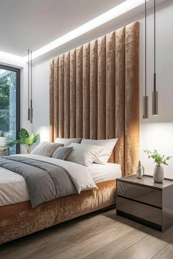 A headboard can instantly define the personality of a Modern Master Bedroom since the bed naturally becomes the focal point. Choosing a bold design helps anchor the room and adds visual interest without needing excessive décor. Upholstered headboards introduce softness and luxury, while wood or metal options offer a clean, modern edge.