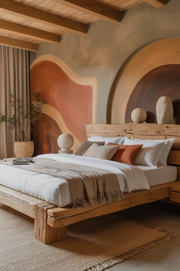 Natural materials add warmth and authenticity to a Modern Master Bedroom, preventing it from feeling overly stark. Wood, stone, and woven elements introduce organic textures that balance modern design. These materials help create a grounded, inviting atmosphere.