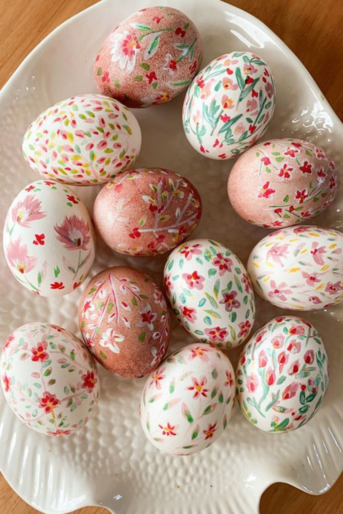 Painting eggs is something I always include because it’s affordable and creative. I like experimenting with soft patterns, gold touches, or even simple dots.