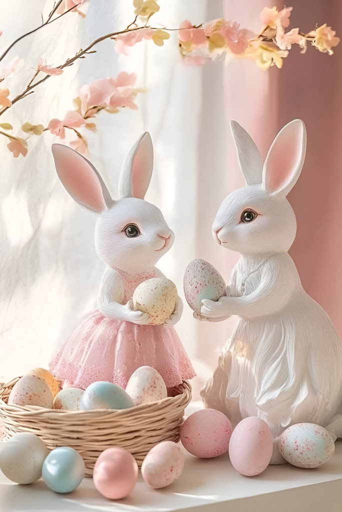 Bunny decor is something I use carefully. A few pieces like a figurine or pillow are enough to create the theme.