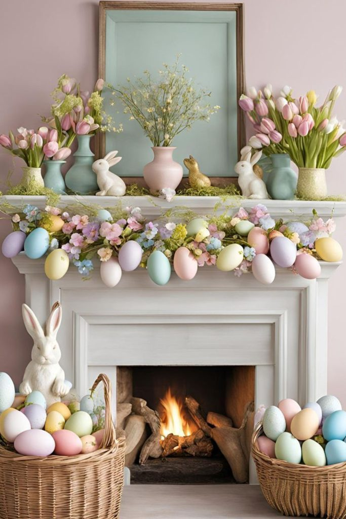 14. Easter Mantel Magic: A Dramatic Focal Point