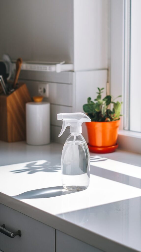 A simple mix of equal parts white vinegar and water works well for many household surfaces. It helps cut through grease and removes everyday dirt from countertops, sinks, and cabinet doors. The smell fades quickly after use, leaving surfaces fresh and streak free. While it’s not suitable for natural stone, it performs well on most other sealed areas. This solution keeps cleaning straightforward and affordable. Using it regularly prevents buildup and makes maintenance easier over time. It’s one of the most reliable Easy DIY Home Cleaning Tips for daily use.