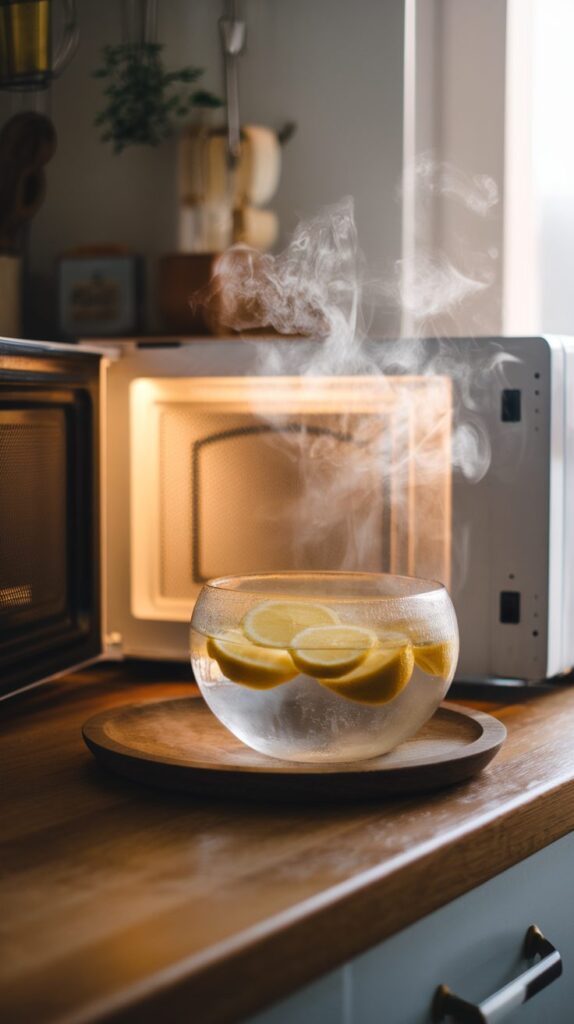Steam makes microwave cleaning much easier. Heating a bowl of water with lemon slices creates steam that loosens dried food and splatters. Letting it sit for a few minutes allows the moisture to soften stuck residue. After that, wiping the interior becomes quick and simple. This method reduces scrubbing and saves time. It turns a messy appliance into an easy task. Regular steam cleaning keeps the microwave fresh with minimal effort.