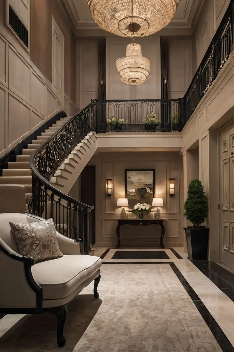 Using a neutral color palette creates a calm and timeless atmosphere. Shades like beige, gray, or off-white make the foyer feel spacious and elegant while allowing other design elements to shine. Neutrals are versatile, matching both modern and classic styles effortlessly.
