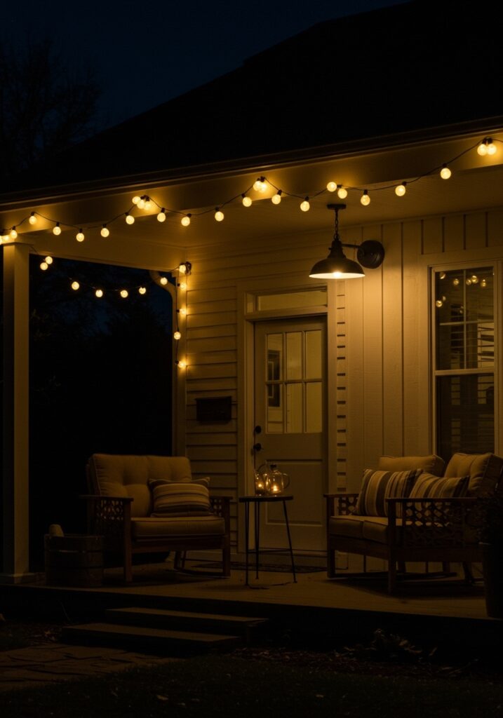 This paragraph explains the importance of using different types of lighting instead of relying on just one source. It highlights how combining overhead lights, wall fixtures, and soft ambient lighting creates a warm and inviting atmosphere, making this one of the most effective Front Porch Ideas.