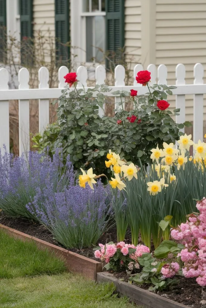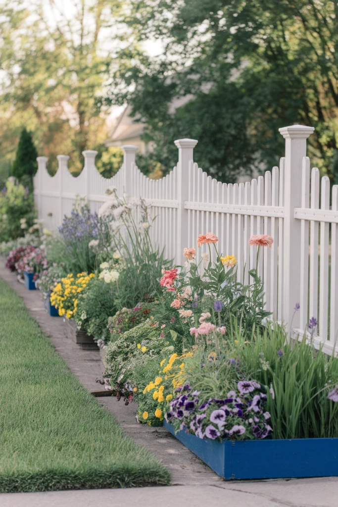 Using the fence line creatively is one of the easiest front yard landscaping ideas to improve the overall view of the yard. Flowering vines and climbing plants can transform plain fencing into a colorful garden feature.