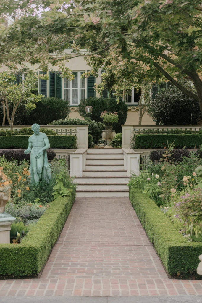 Decorative accents like statues, fountains, or ornamental planters add a sense of elegance. This style works especially well for homes with traditional architecture.