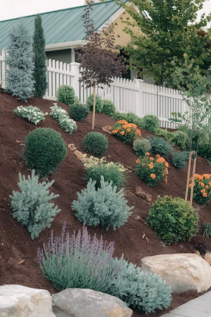 Each terrace can feature different plants such as succulents or wildflowers to build visual variety. Pathways, steps, and subtle lighting help make the slope easier to navigate while enhancing the yard’s beauty.