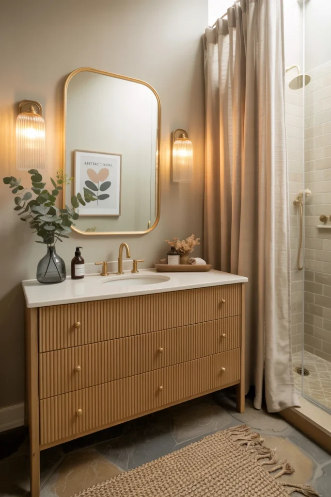 Lighting completely changed how my bathroom felt. A poorly lit space feels tighter than it actually is. I added mirrors and layered lighting to reflect brightness across the room.