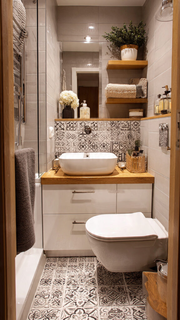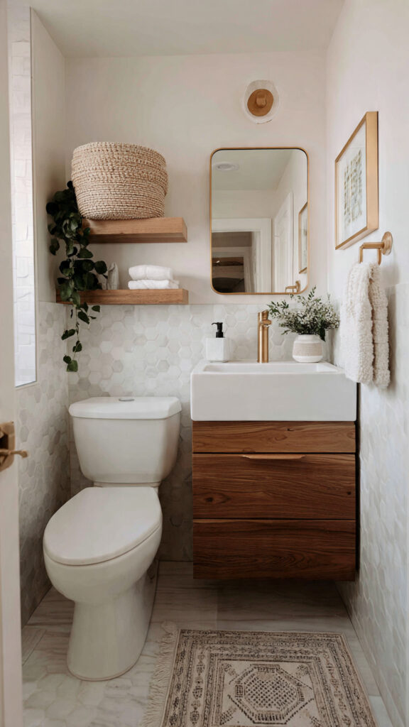 I’ve learned that less truly works better in small bathrooms. Too many colors or patterns can make the space feel chaotic.