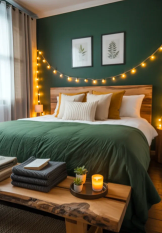 Layering these colors with wood furniture or textured fabrics helps the room feel even more comfortable. The overall effect is a Gorgeous Dark Green Bedroom filled with personality and warmth.