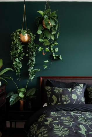 If your room has natural light, green really comes alive, making it an ideal choice for creating a restful, rejuvenating space. Adding indoor plants enhances the organic feel and brings a lively energy to your dark, feminine retreat.