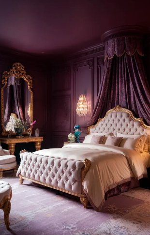 Deep purples like plum or eggplant add an instant regal, moody vibe. Using these shades on walls, bedding, or curtains creates a rich, luxurious atmosphere. Pairing purple with metallic gold accents or soft pinks enhances the elegance, while neutral elements keep the space balanced.