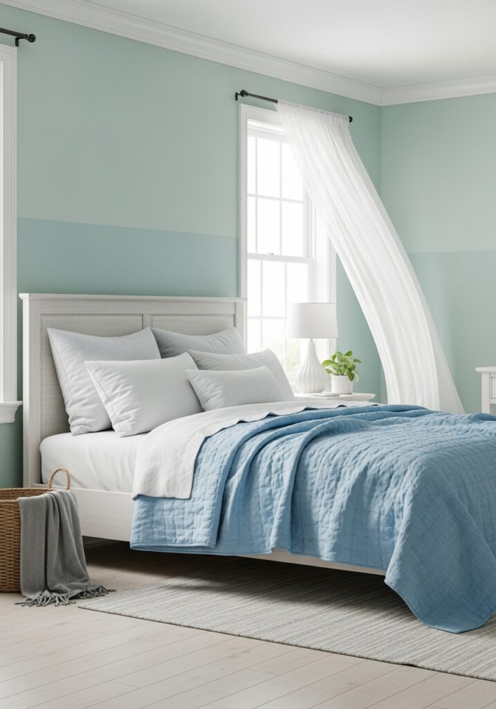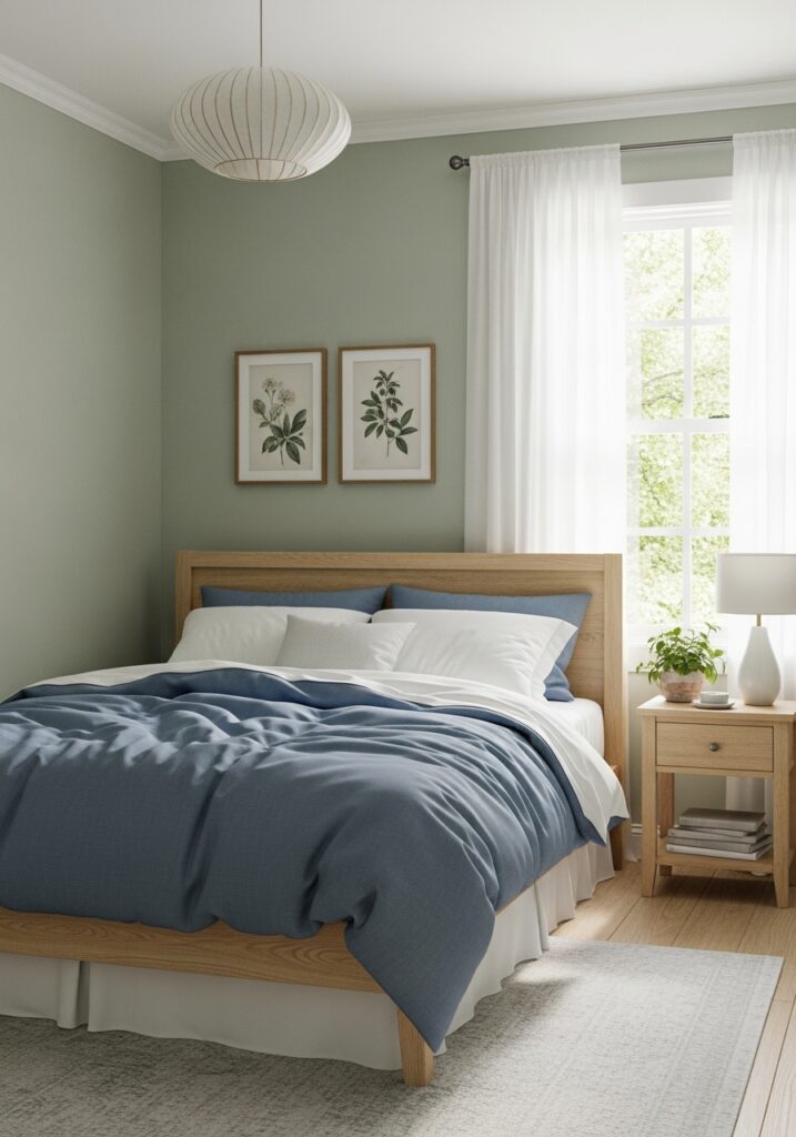 Lighter Green and Blue Bedroom Ideas are perfect for creating a peaceful retreat that feels bright and relaxing. These softer combinations work especially well in smaller rooms or spaces with limited natural light because they help the room feel open rather than heavy. Gentle greens paired with delicate blues can mimic a spa-like setting where stress fades away. Using airy fabrics, pale paint colors, and light wood finishes keeps the mood fresh and calm. These subtle palettes allow the colors to shine without overwhelming the senses, making the bedroom feel like a quiet escape designed for rest and comfort.