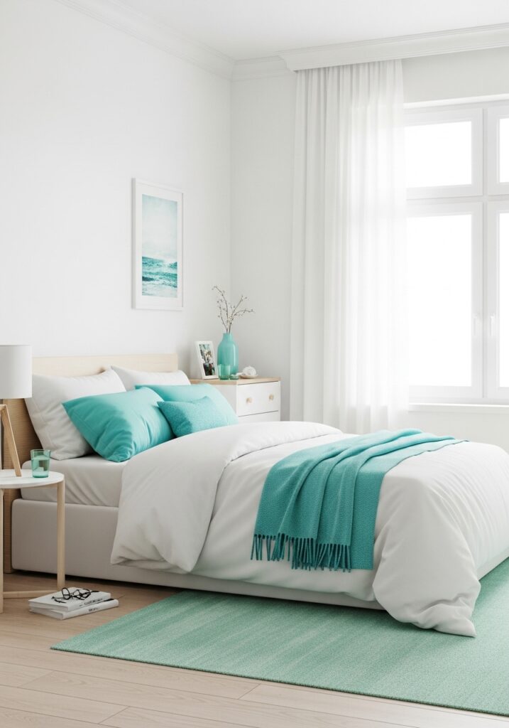 After choosing a preferred palette, the finishing details make all the difference in Green and Blue Bedroom Ideas. Lighting plays a crucial role in how the colors appear, and warm-toned bulbs tend to enhance the richness of both shades. Texture is equally important because green and blue are considered cool tones, which means adding warmth through wood, soft fabrics, and warm metallic finishes keeps the space from feeling cold. Layering rugs, throws, velvet cushions, and natural materials creates depth and comfort. Even the flooring and area rugs can tie the entire design together by blending subtle hints of both colors. Thoughtful styling ensures the room feels cohesive, cozy, and visually balanced.