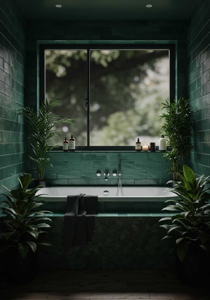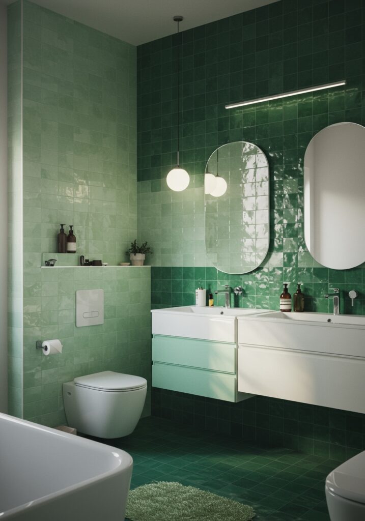 Green tiles work because they naturally connect the room to nature. I prefer softer shades like sage or muted olive since they feel calming and not overwhelming.