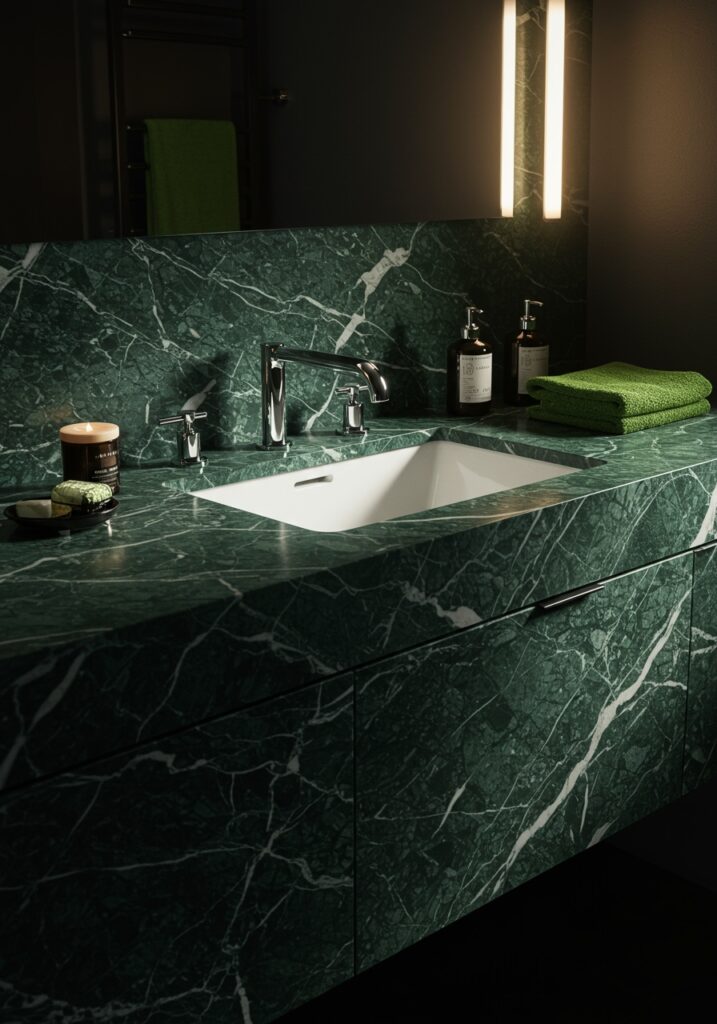 Green countertops gave my bathroom a more premium and polished look. Even a small vanity with green stone changes the entire feel.