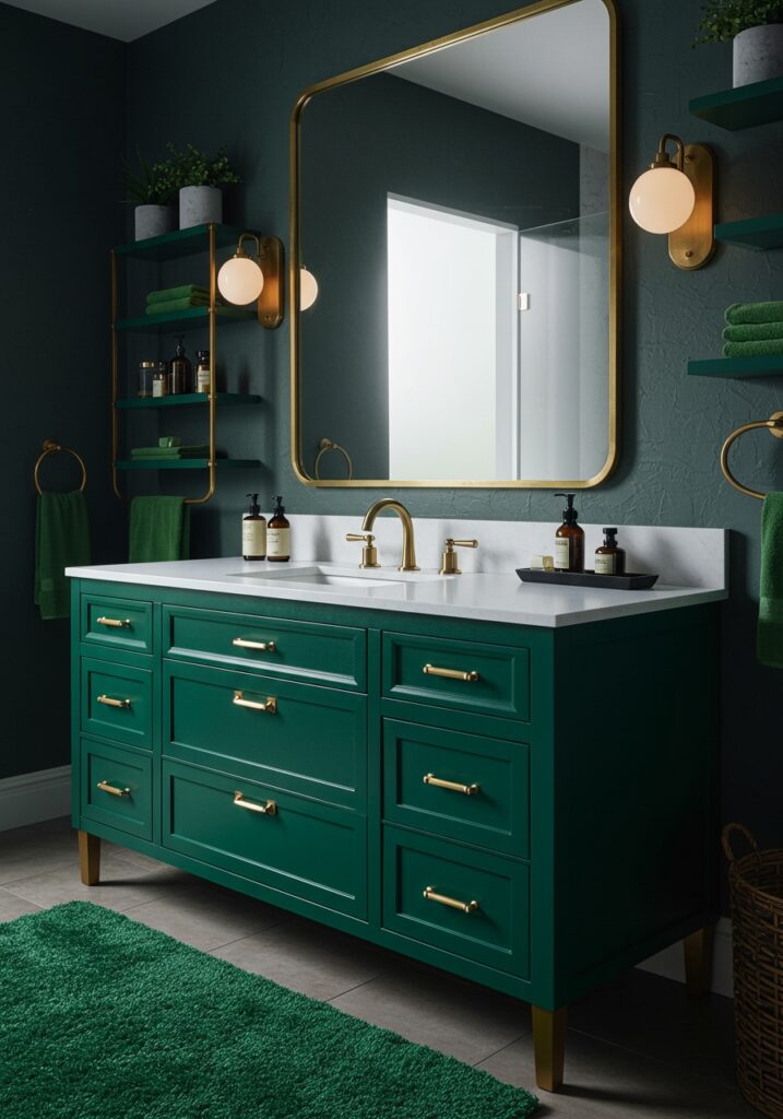A green vanity became the highlight of my bathroom design. It adds both style and storage at the same time.