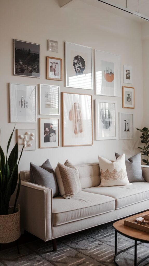 A gallery wall adds personality and fills empty spaces with interest. This approach transforms blank walls into meaningful displays. It’s one of those Home Makeover Ideas that feels creative yet manageable.