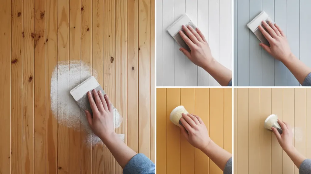 Carefully checking the paneling helps identify small issues that could affect the final result. Cracks, dents, or nail holes should be filled with wood filler so the surface becomes smooth and even. Once the filler dries, sanding the repaired spots ensures the painted wood paneling will look consistent and seamless.