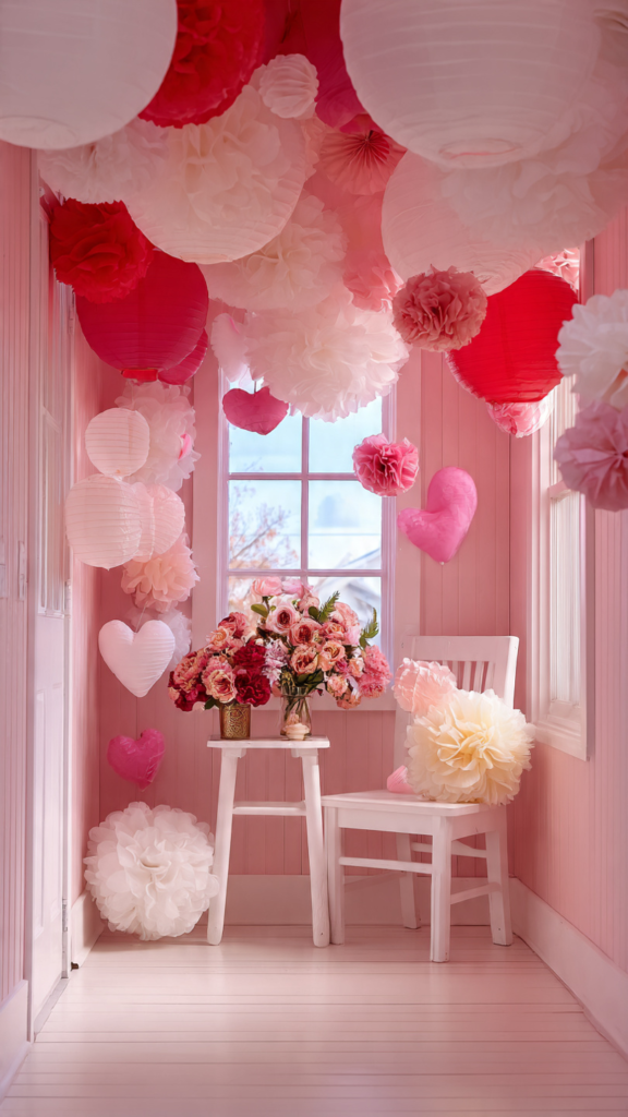 Creating paper hearts in different colors is a fun and personal way to decorate for Valentine’s Day. This simple DIY idea allows you to customize your space using colors that match your style or mood. Traditional reds and pinks work beautifully, but mixing in other shades can add energy and creativity. These handmade hearts add charm and cheer, making them one of the most versatile Ideas for Valentine’s Day decorations for walls, windows, or tables.