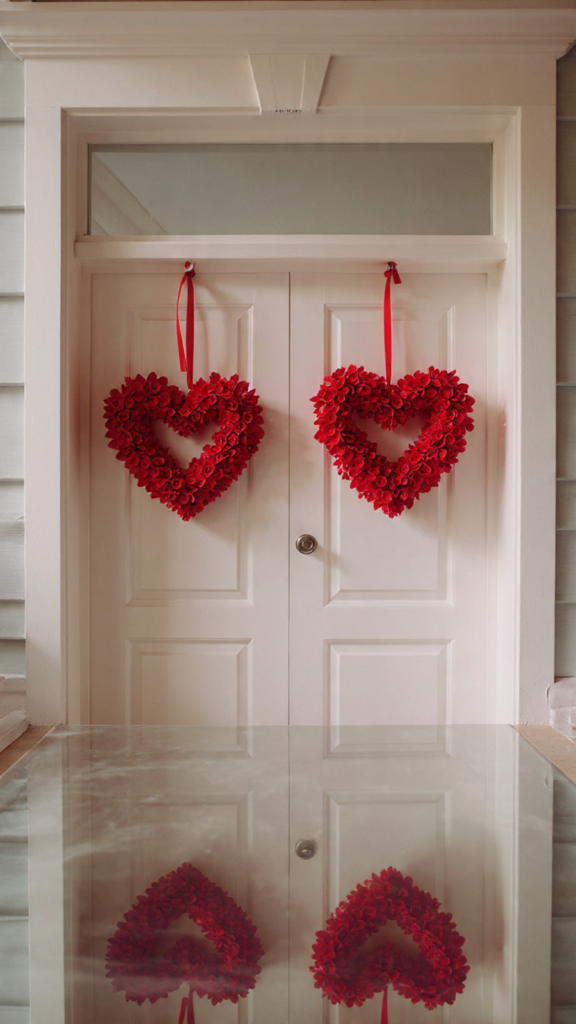 Hanging a heart-shaped wreath on your front door is a thoughtful way to welcome Valentine’s Day into your home. This decoration instantly signals love and care while making your entrance feel warm and inviting. Heart-shaped wreaths act as a symbol of affection and help set the tone for a romantic celebration before anyone even steps inside. As Ideas for Valentine’s Day go, this is an easy yet meaningful way to make your home feel special and festive.