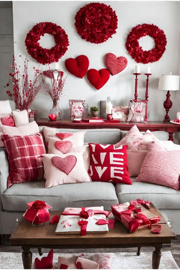 Valentine’s pillows add both comfort and style to your living spaces. Using heart shapes or love-themed designs helps reinforce the holiday mood while making sofas and beds feel cozy. Mixing different textures and colors creates a layered and inviting look. As Ideas for Valentine’s Day décor go, pillows are a simple way to refresh a room without major changes.