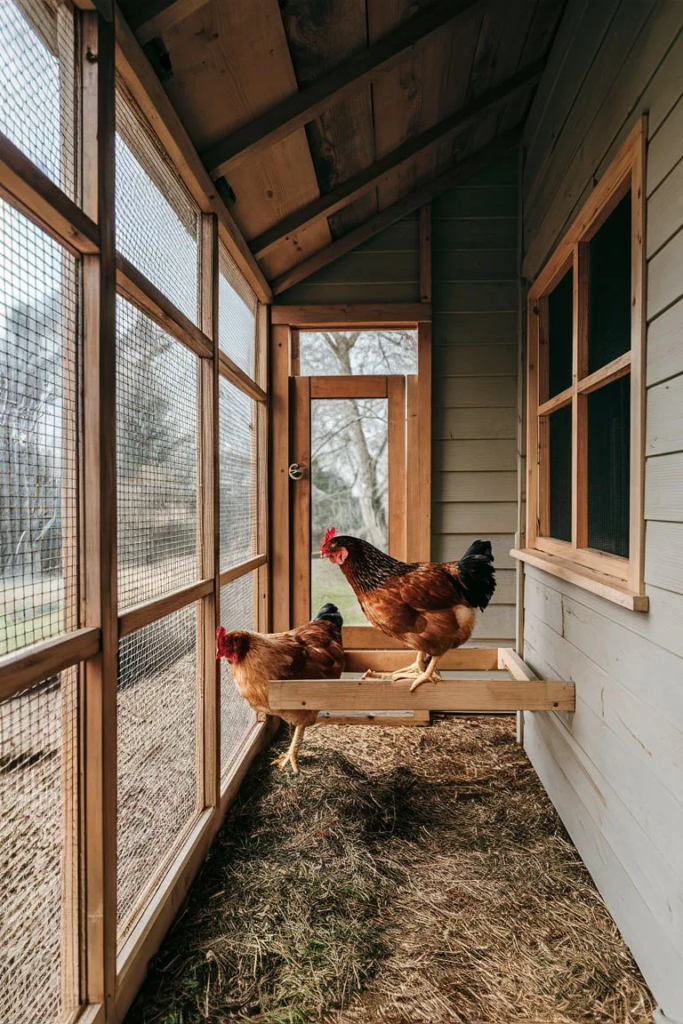 Light and airflow play a huge role in coop health. Bright, well-placed windows allow sunlight to enter while improving ventilation. This helps regulate temperature and keeps the interior from becoming damp or stale. Good airflow reduces odors and moisture buildup, which are common causes of respiratory problems. A well-ventilated coop simply feels healthier for everyone involved.