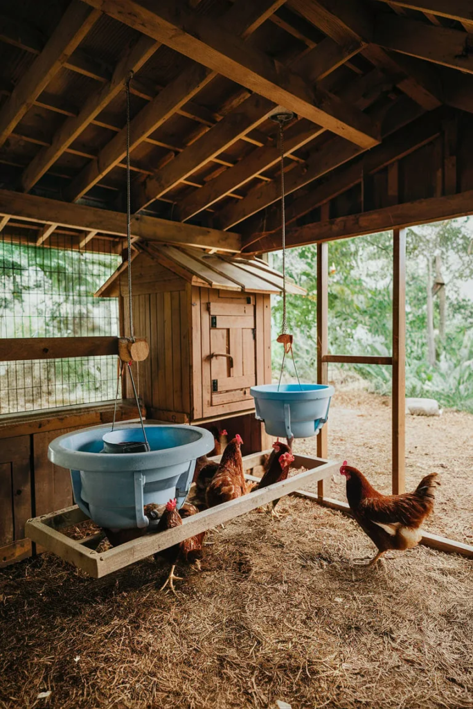 Feeders and waterers placed on the floor often lead to wasted feed, dirty water, and soggy bedding. Hanging them slightly off the ground keeps them cleaner and easier for chickens to access. This small adjustment saves money, reduces daily cleanup, and keeps the coop noticeably tidier over time.