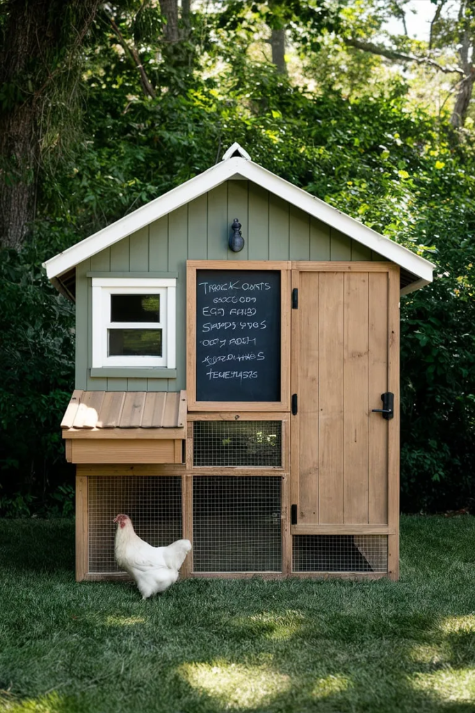A chalkboard inside the coop is a simple yet effective way to stay organized. Tracking egg counts, feeding schedules, and maintenance reminders helps maintain consistency. It also adds a personal, hands-on feel to the space.