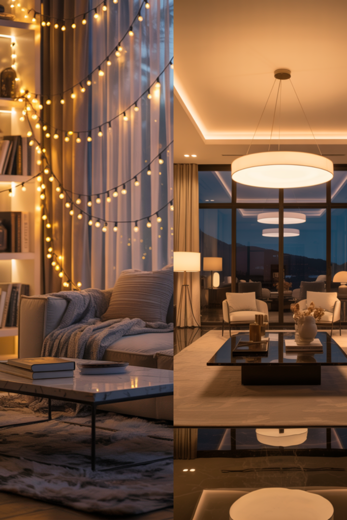 String lights are a versatile and budget-friendly option that adds warmth and charm. They can be draped along walls, ceilings, or furniture to create a cozy, inviting atmosphere. They work especially well in minimalist or boho-chic designs.