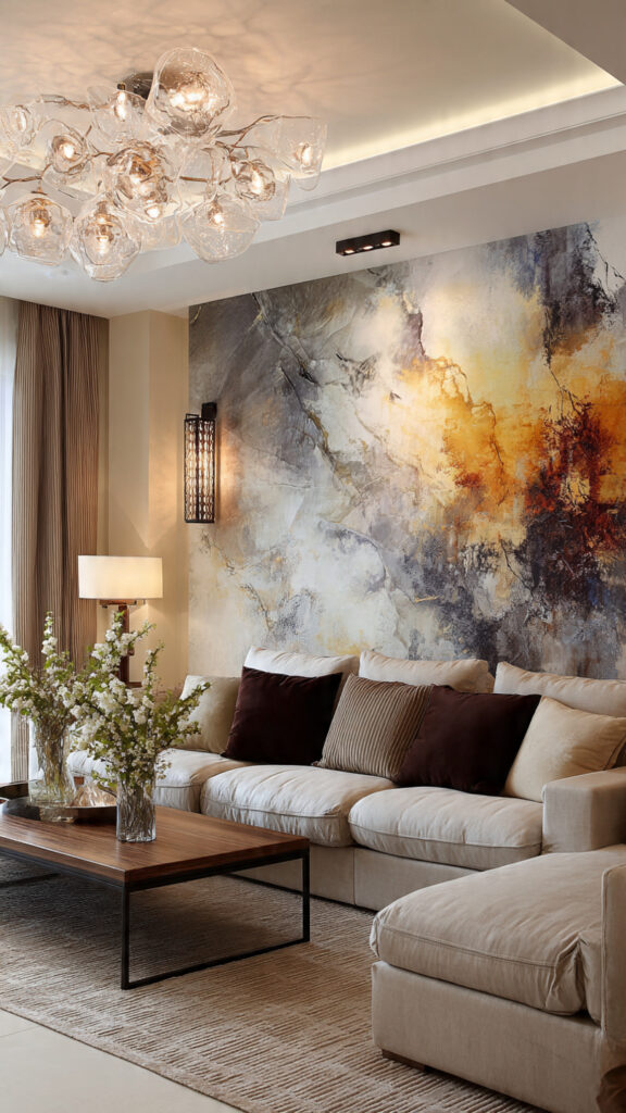 Instead of hanging artwork, I sometimes turn the whole wall into art. Abstract murals work well when I want a bold and creative statement.