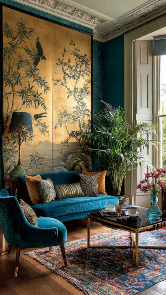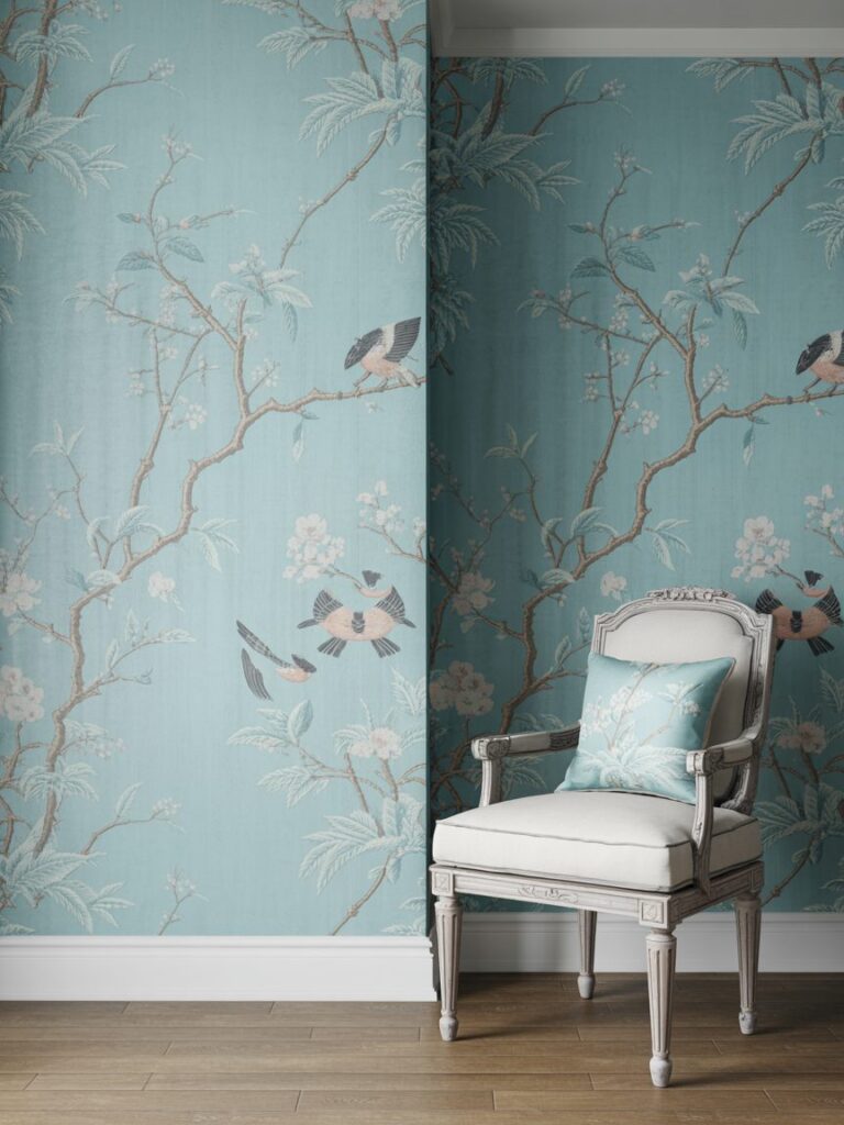 Chinoiserie wallpaper instantly makes a room look luxurious. I’ve seen it work well in both modern and classic homes.