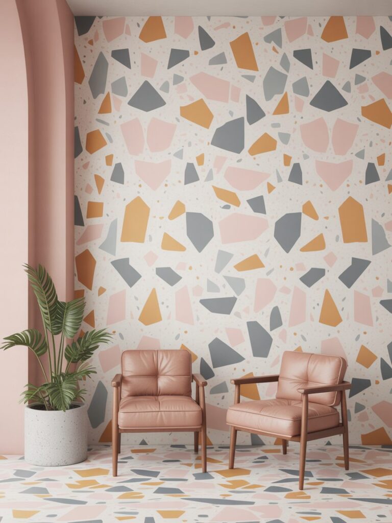 Terrazzo patterns add a playful and retro vibe. I suggest them for modern and mid-century interiors.