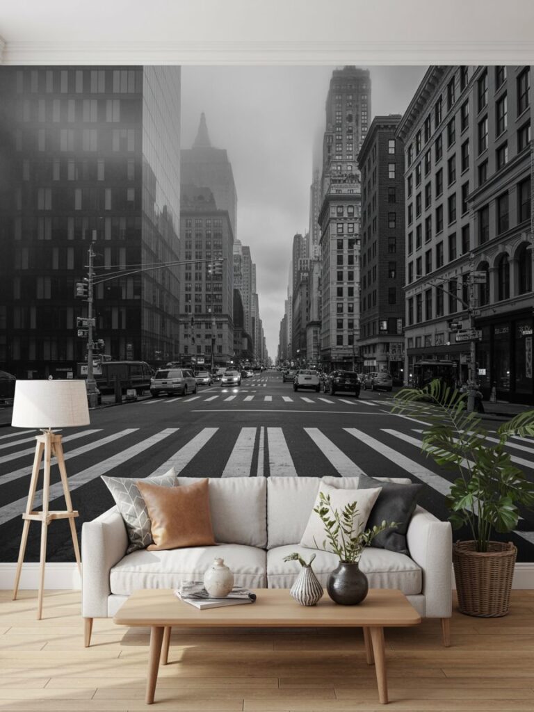 Black and white murals create a deep and dramatic feel. I like using them in neutral spaces.